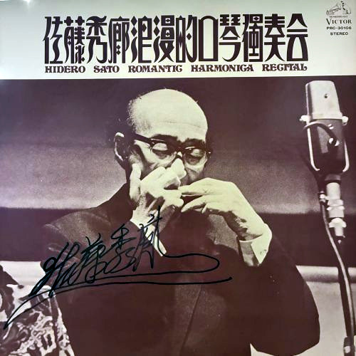 日本だけでなく、ヨーロッパやアメリカでも演奏活動を行ったハーモニカ奏者の佐藤秀廊による実況録音盤。佐秀会室内楽団との共演した中国古謡「孟姜女」カヴァーは、エキゾ好きの方にもオススメ。サイン入り。♪