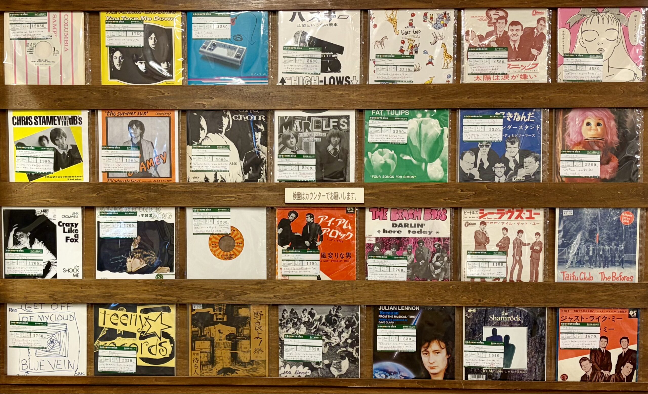 3月は7インチ壁でスタート。こころのやさしき人々のロック。ここにあるビートルズ、サイモンとガーファンクル、サーチャーズのシングル盤を買う方。もしもぼくがレジにいたらお声かけてほしい。そっと伝えたいことがあるんです。